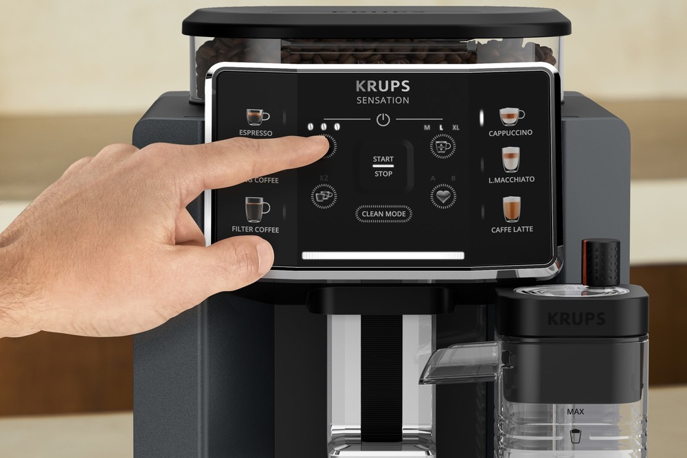 Elegantní provedení s kompaktním designem, díky kterému se kávovar Krups Sensation řadí mezi ty nejkompaktnější na trhu.